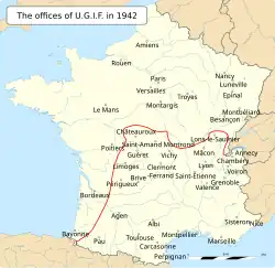 The General Union of French Israelites (French: Union générale des israélites de France, UGIF) was a body created by the antisemitic French politician Xavier Vallat under the Vichy regime after the Fall of France in World War II. UGIF was created by decree on 29 November 1941 following a German request, for the express purpose of enabling the discovery and classification of Jews in France and isolating them both morally and materially from the rest of the French population.[1] It operated in two zones: the northern zone, chaired by André Baur, and the southern zone, under the chairmanship of Raymond-Raoul Lambert.[2]