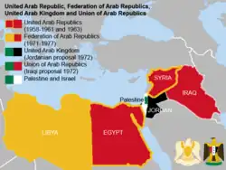 In March 1972, Ba'athist Iraq proposed to Egypt and Ba'athist Syria a re-establishment of the United Arab Republic, which failed in 1961. The Iraqi proposal was an immediate reaction to Jordan's proposal for a United Arab Kingdom but collided with the already established Federation of Arab Republics and failed because of Iraqi–Syrian differences.