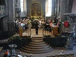 Carsten Koch established a series of symphony concerts for the annual Tag des offenen Denkmals (European Heritage Day), beginning in 2004 a cycle of the symphonies of Beethoven.[18] It was completed in 2012 with the Ninth Symphony.[19] This concert on 9 September, during a "Jubiläumswoche der Kirchenmusik" (anniversary week of church music), was also part of the celebration of anniversaries marking 100 years with the Walcker organ and 40 years with the Idsteiner Kantorei.[18] In addition to the standard choral repertoire, Koch has selected rarely performed works such as Schumann's Missa sacra on 9 November 2008.[20] In 2011 the choir performed Mendelssohn's Lobgesang.[17] In 2017, the first concert after restoration was dedicated to contemporary music including Ola Gjeilo's Sunrise Mass and Eric Whitacre's Five Hebrew Love Songs.[17][21] In 2018, Bach's complete Christmas Oratorio was performed in two concerts in ecumenical collaboration.[22]
