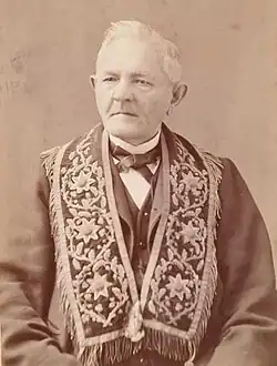 The George Washington Lodge #1, the first lodge in the United States, was established in New York City in 1839. By 1979 the group was apparently defunct as a national organization.[3] Despite the decentralization of the U.A.O.D. as a national organization, the United Ancient Order of Druids of California (or simply "Druids of California")--founded in Placerville, CA by Fredrick Sieg in the nineteenth century—continues to exist. It is governed by a "Grand Grove" with coordinated 13 subsidiary Groves and numerous Circles spread across the state. California Grove No. 1 was officially reinstated in Placerville, CA in 2017-18 and continues to enjoy a modest membership as of 2019. The stated mission of the Druids of California is "to promote knowledge, unity, and peace".[4]