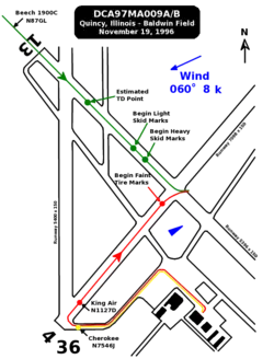 - ^ a b c d e "Runway Collision, United Express Flight 5925 and Beechcraft King Air A90, Quincy Municipal Airport, Quincy, Illinois, November 19, 1996" (PDF). Aircraft Accident Report. National Transportation Safety Board. July 1, 1997. NTSB/AAR-97/04. Retrieved September 16, 2017. - This includes the response to Voorhis. The copy of the report at the Embry-Riddle Aeronautical University does not have the Voorhis response.