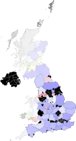 There were also 687 independent councillors and 4 Mebyon Kernow councillors. The remaining 217 seats were held by residents' associations and minor parties.[19] A by-election for the parliamentary constituency of Manchester Gorton (caused by the death of Sir Gerald Kaufman, the sitting MP) was due to be held on the same day as the local election, but the by-election was cancelled after the general election was called for the following month.[17]