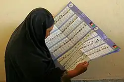 ![]() Afghan woman during parliamentary elections (2005) | ||