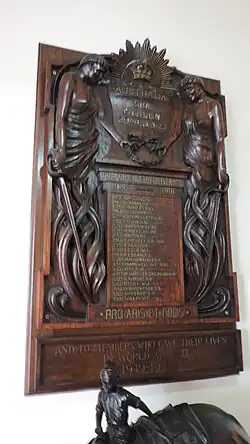 An honour board commemorating club members who died in World War I is located in the entrance area.