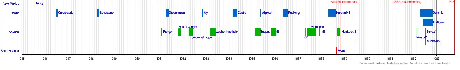 Graphical timeline of United States atmospheric nuclear weapons tests [1]