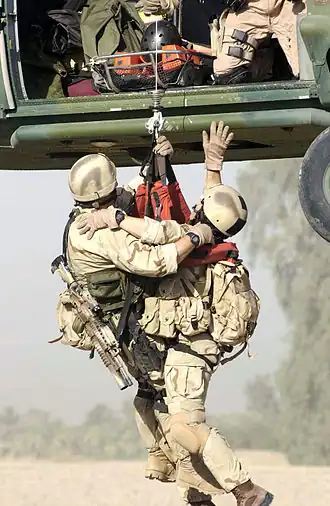 Pararescuemen have continued to play an integral part in the US military in Iraq and Afghanistan during the Global War on Terror and beyond. Deploying with other Special Operations Forces (SOF) teams, Pararescuemen continue to fight and save lives on the battlefield.[16][17][18]