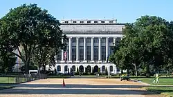 In 1868, the department moved into the new Department of Agriculture Building in Washington, designed by famed D.C. architect Adolf Cluss. Located on the National Mall between 12th Street and 14th SW, the department had offices for its staff and the entire width of the Mall up to B Street NW to plant and experiment with plants.[15]
