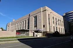 The United States Post Office and Courthouse, commonly called the Knoxville Post Office, is a state building located at 501 Main Street in Knoxville, Tennessee, United States. Constructed in 1934 for use as a post office and federal courthouse, the building contains numerous Art Deco and Moderne elements, and is clad in Tennessee marble.[2] While the building is still used as a branch post office, the court section is now used by the state courts.[3] The building is listed on the National Register of Historic Places for its architecture and political significance.[1]