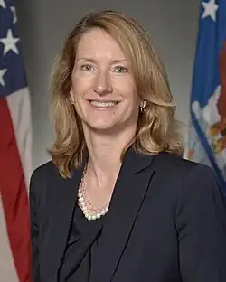 The secretary of the Air Force, sometimes referred to as the secretary of the Department of the Air Force,[1] (SecAF, or SAF/OS) is the head of the Department of the Air Force and the service secretary for the United States Air Force and United States Space Force. The secretary of the Air Force is a civilian appointed by the president, by and with the advice and consent of the Senate.[2] The secretary reports to the secretary of defense and/or the deputy secretary of defense, and is by statute responsible for and has the authority to conduct all the affairs of the Department of the Air Force.[2][3]