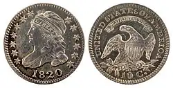 - ^ History of the Capped Bust Dime (1828-1837) Archived 2010-07-26 at the Wayback Machine Retrieved on 2010-2-9