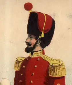 In 1855, United States Marine Band director Francesco Scala adopted the bearskin helmet for that band's drum-major in emulation of European trends. This transition occurred as the band was reorganizing itself from a traditional American fife and drum corps into its modern incarnation and the style later became popular headgear used by many military band drum-majors in the United States.[7] (A shortage of bearskins in the late 1880s caused the price of the hats to skyrocket, with the New York Times then reporting their use might be phased out entirely. "It can readily be seen what a price has to be paid for keeping up a custom which is rather old, it is true, but is practically a useless one save for the purpose of military display," the newspaper opined.[7])