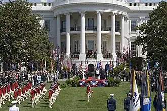 For hundreds of years, military forces have used music to signal their troops.[1] The use of music retains an important place in modern diplomatic protocol and military courtesy and is part of many official military events, such as state funerals, military parades, naval christening, officer-commissioning ceremonies, and promotion ceremonies.