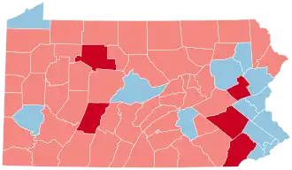 Five counties that voted for Obama in 2008 voted for Romney in 2012: Berks, Cambria, Carbon, Chester, and Elk. This made Obama the first Democrat to win the presidency without carrying Cambria County since Woodrow Wilson in 1916, and made him the first Democrat to win the White House without carrying Elk County since Franklin D. Roosevelt in 1940, and the first to do so without carrying Carbon County since John F. Kennedy in 1960. As of the 2024 presidential election, this is the last time that Chester County voted for the Republican candidate, that Luzerne County voted for the Democratic candidate, and that Pennsylvania voted more Democratic than the nation as a whole.[8]