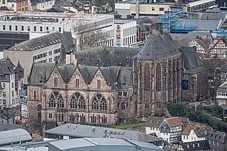 The University Church of Marburg is a 13th-century, asymmetric, two-aisled hall church in Marburg, Hesse.[1]