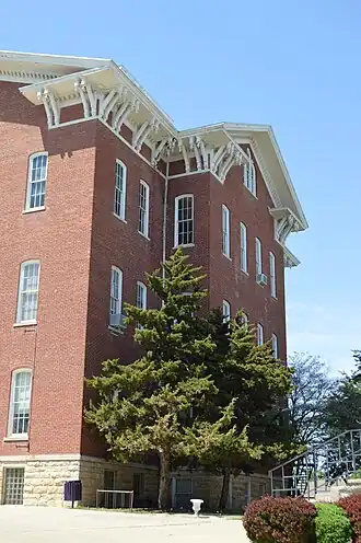 University Hall is a building on the campus of Lincoln College in Lincoln. Built from 1865 to 1866, the building was the first constructed on the campus of the college, then known as Lincoln University. The college was founded by the Cumberland Presbyterian Church and was at the time one of the few religiously affiliated schools in the North. University Hall was designed in a Tuscan-influenced Italianate style and features a four-sided cupola and a cornice with dentils and corbels.[2] Until the college's closure in May 2022, the building housed the school's administrative offices. Since the closure, the building houses the liquidation office.