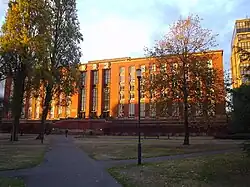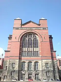 The campus has a wide diversity in architectural types and architects. "What makes Birmingham so exceptional among the Red Brick universities is the deployment of so many other major Modernist practices: only Oxford and Cambridge boast greater selections".[58] The Guild of Students original section was designed by Birmingham inter-war architect Holland Hobbiss who also designed the King Edward's School opposite. It was described as "Redbrick Tudorish" by Nikolaus Pevsner.[59]