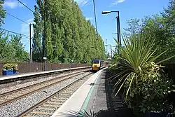 In 1978, University station, on the Cross-City Line, was opened to serve the university and its hospital. It is the only university campus in mainland Britain with its own railway station. In 2021, construction began on a redeveloped facility adjacent to the existing structure as part of the West Midlands Rail Programme (WMRP).[72] The rebuilt station was completed and opened to the public in January 2024.[73] Nearby, the Steampipe Bridge, which was constructed in 2011, transports steam across the Cross-City Railway Line and Worcester & Birmingham Canal from the energy generation plant to the medical school as part of the university's sustainable energy strategy. Its laser-cut exterior is also a public art feature.[74]