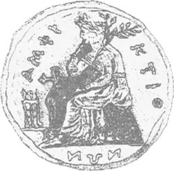 | Mascot | Apollo seated left on omphalos, tripod to left, ΑΜΦΙΚΤΙΟΝΩΝ around, on Silver stater from Delphi, 338/6–334/3 BC. |