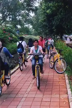 Since July 2008, Universitas Indonesia has offered a bike rental facility to students through the Yellow Bicycle Programme.[29] For the rent, students need to show their UI student card (KTM) to the rental officer. The bike must be used on bike lanes, and it must be returned to a bike station. The return process is identical to borrowing as students must show their KTM to the guard. Though this has largely been replaced by Beam Mobility Electric bikes.[30]