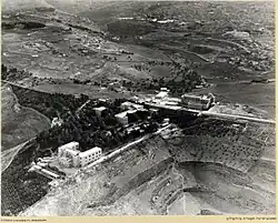 During the 1948 Arab–Israeli War, attacks were carried out against convoys moving between the Israeli-controlled section of Jerusalem and the university.[12] The leader of the Arab forces in Jerusalem, Abdul Kader Husseini, threatened military action against the university Hadassah Hospital "if the Jews continued to use them as bases for attacks."[13] After the April 1948 Hadassah medical convoy massacre, in which 79 Jews, including doctors and nurses, were killed, the Mount Scopus campus was cut off from Jerusalem.[14] British soldier Jack Churchill coordinated the evacuation of 700 Jewish doctors, students and patients from the hospital.[15]