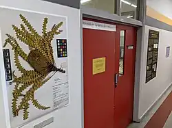 Although it is generally acknowledged that there was a small preserved plant collection already on campus, the University's herbarium was officially established in 1926.[2][5] Reverend Montague Rupp offered the non-orchid portion of his personal herbarium, of approximately 5,000 specimens, to his alma mater Trinity College.[6] The specimens were ultimately sent to the botany department, and wooden cupboards were custom-built to house the new, and significant collection.[7] In 1974, the herbarium was listed in the Index Herbariorum, and in 2014 it became a data provider with the Atlas of Living Australia.[3][7]