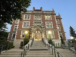 Originally known as the Law Building and erected at a cost of $30,000, it was the first building of the University of Minnesota Law School, itself founded in 1888. The Richardsonian Romanesque-style building was later named after William S. Pattee, the School's first dean,[2] and doubled in capacity from a 1905 expansion.[11] In 1921, the School's dean, Everett Fraser complained that the classrooms were inadequate and that the library space was too flammable, as seen with the prior burning of Old Main in 1904.[2] The Law School then moved to the newly built Fraser Hall in 1928, and later to Mondale Hall. Pattee Hall was left empty until 1947, when it became the home to the University Elementary School, until its departure in 1965,[12] leaving the building vacant once again. The Institute on Community Integration occupied the building from 1985 until they outgrew the building in 2021 and moved into the Masonic Institute for Brain Development on the St. Paul campus.[2][13] The Department of American Indian Studies moved into Pattee Hall in the fall of 2024 following a refresh of the building.[14] Various symbols of the Law School still exist throughout the structure.[2]