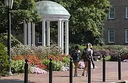 A symbol of the university is the Old Well, a small neoclassical rotunda at the south end of McCorkle Place based on the Temple of Love in the Gardens of Versailles, in the same location as the original well that provided water for the school.[93] The well stands at the south end of McCorkle Place, the northern quad, between two of the campus's oldest buildings, Old East, and Old West.