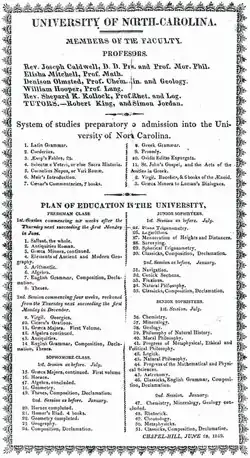 Following the Civil War, the university began to modernize its programs and onboard faculty with prestigious degrees.[28] The creation of a new gymnasium, funding for a new chemistry laboratory, and organization of the Graduate Department were accomplishments touted by UNC president Francis Venable at the 1905 "University Day" celebration.[29]