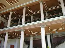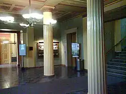 These buildings are strongly influenced by Schinkel's monumental buildings in Berlin, in particular the Museumsinsel. The impressive stair hall of Domus Media is closely inspired by the stair hall of Altes Museum in Berlin (completed in 1830).[7]