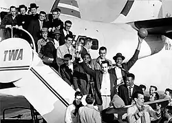 The men's basketball program won three national championships: the 1949 NIT Championship, with Don Lofgran as MVP, and the 1955 and 1956 NCAA National Championships, going undefeated in the 1956 season. Led by NBA Hall of Famers Bill Russell and K.C. Jones, the 1956 Dons became the first undefeated team to win a national championship, winning a then-record 60 games in a row from 1954 to 1956 before losing an exhibition game to the USA Men's Olympic Basketball team. Also of note, the 1954–1955 USF basketball teams became the first major college or university basketball team to win a national title with three African American starters (Russell, Jones, and Hal Perry).[7]