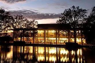 The Ernest F. Hollings Special Collections Library is located adjacent to the Thomas Cooper Library. This facility is home to the Irvin Department of Rare Books & Special Collections as well as the South Carolina Political Collections. The Rare Books Collection ranges from works on philosophy, natural history, and literature among others. The collection contains the largest collection of Robert Burns and Scottish literature materials outside Scotland,[4] and the largest Ernest Hemingway collection in the world.[5] In addition there are also large collections relating to Joseph Heller, Dashiell Hammett, and William Faulkner.[6] The Core Collection consists of the original books acquired by the university at the time of its founding, two items of note are an original copy of Diderot and D'Alembert's Encyclopedie,[7][8] and 30 medieval incunabula, books printed in the first century of printing.[9]