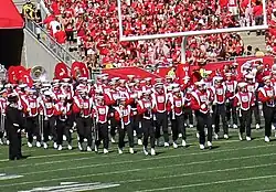 The University of Wisconsin Marching Band (also known as Badger Band, and The Wisconsin Band[1]) is the marching band for the University of Wisconsin–Madison. It was formed in the fall of 1885 to support the university military battalion. Today, it has grown to about 300 members and performs at all home Badger football games. They are known for their intense and athletic high knee “stop at the top” marching style.