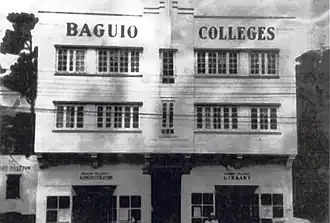Baguio Colleges was founded on June 19, 1946, by Atty. Benjamin R. Salvosa and his wife Evangelina D. Salvosa. It was the first higher learning institution in the highland city of Baguio established after World War II. The college started with 156 students in teacher training and liberal arts, establishing the College of Liberal Art and College of Education.[4] Baguio Colleges rented spaces in the Arevalo and the Antipolo buildings and later moved to the Lopez and Limping buildings along Session Road.[3]