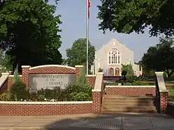 One of the main landmarks of the university is the Raymond Munger Memorial Chapel, erected in 1933. The chapel was built with one of the single largest donations ever received by the college at the time, a $75,000 gift from Miss Jesse Munger of Plainfield, N.J. Munger donated the money to build the chapel in memory of her father, Raymond Munger, a New York businessman who was known for his interest in religion and education. College students were paid to provide much of the labor for excavation, laying of the foundation and hauling of materials. Munger Chapel, which is listed in the National Register of Historic Places,[9] was designed by architect A.O. Clark of Rogers, Arkansas. Built of limestone trimmed with Nu-Carth stone, it is of Gothic design and follows general plans used in large cathedrals. The stained glass windows were designed and installed by The Willet Studios of Philadelphia. The university holds weekly services for the campus community in the chapel. It is also a popular wedding venue. The university celebrated the 75th anniversary of the chapel during a special ceremony during the 2008 Alumni Weekend.