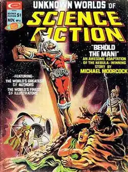 The black-and-white, science fiction comics magazine Unknown Worlds of Science Fiction ran six bimonthly issues (cover-dated January–November 1975), plus one annual publication, Unknown Worlds Of Science Fiction Giant Size Special Issue #1 (1976).[1][2] It was published by Magazine Management, at the time the parent company of Marvel Comics, and was cover-branded with the logo of its distributor, Curtis Circulation. Utilizing many Marvel writers and artists, as well as other creators, it was launched following the cancellation of Marvel's 1973-74 comic book SF anthology Worlds Unknown.
