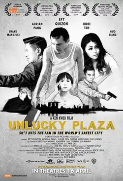 Unlucky Plaza is a 2014 Singaporean black comedy thriller film written and directed by Ken Kwek. It stars Epy Quizon as a Filipino immigrant to Singapore who takes hostages after falling for a scam. It premiered at the Toronto International Film Festival and was released in Singapore on 16 April 2015. The story is told in a series of flashbacks from the point of view of a talk show that has reunited the captor and his former hostages.