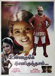Unnaruge Naan Irundhal (transl. If I am around you) is a 1999 Indian Tamil-language romantic comedy film directed by Selva. It stars R. Parthiban and Meena, while Manorama, Vadivelu, Vivek, and Anandaraj play supporting roles. The film has music by Deva, editing by Suresh Urs, and cinematography by R. Raghunatha Reddy. It was released on 3 December 1999 and became a success.[1]
