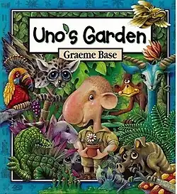 Uno's Garden is a picture book written and illustrated by Australian children's author Graeme Base. The story features themes of environmental degradation, conservation of nature and habitat, and extinction. It also features arithmetic, and at the back of the book there are instructions for several number games relating to the book. It also contains a game in the book that challenges the reader to find an amount of plants, animals, buildings and sometimes one snortlepig. All of the animals and plants featured in the book were invented by the author. Some of the animals included are the snortlepig, moopaloops, lumpybums, and frinklepods; and some of the plants are the leefytree, featherferns, sunnycups, and shadyblades.