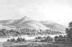 Untertürkheim was first mentioned in 1121 as Durinkheim. The name probably goes back to an Alemannic chieftain in the 4th century, after whom the town was named Duringoheim.[1] The name in today's dialect is (Onder-)Dürkna.