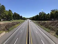 Interstate 476 follows the Pennsylvania Turnpike's Northeast Extension along a northwest–southeast alignment through the township, but the nearest interchange is in South Whitehall Township. Pennsylvania Route 29 and Pennsylvania Route 100 meet in Shimerville and continue down Chestnut Street to Hereford just over the Berks County line. Chestnut Street, Kings Highway, Vera Cruz Road, and Powder Valley Road are all north-to-south routes. St. Peters Road/Shimerville Road/Main Road/Brunner Road crosses it SW-to-NE and Churchview Road proceeds east from Old Zionsville via Dillinger. Buckeye Road is an east-to-west road connecting Pennsylvania Route 29 (Chestnut Street) to Pennsylvania Route 100 in Macungie.