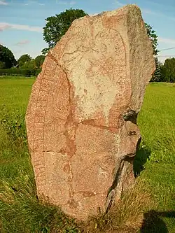 - Rikʀ let ræisa stæin þenna æftiʀ Fasta, faður sinn, ok þau Gunnþruðr. Guð hialpi hans salu ok Guðs moðiʀ.[3]