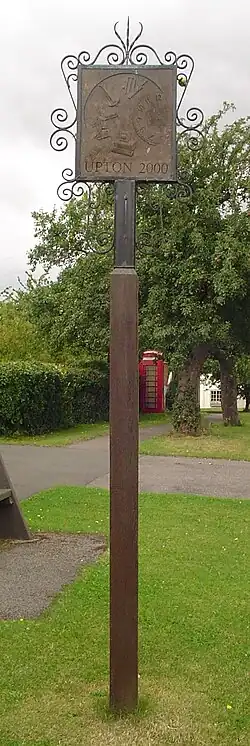 The village had a population of 425 at the 2011 census,[2] falling slightly to 419 at the 2021 census.[3] The parish church of St Peter and St Paul is 13th century, built in the Perpendicular style. The tower of the church was also used as a dovecote.[4] There is also a village hall and a public house (The Cross Keys). It is also the home of the British Horological Institute based at Upton Hall. The Clock House, a tea room, is located next to the Hall. What once was the village shop is now a private house. Upton Mill was a wooden post mill built c. 1814. Still in use in 1905 the body of the mill had gone by 1911, the roundhouse being re-roofed and retained as a store.[5]