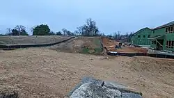 The railroad opened in 1860. Its route lay along the valley of Four Mile Run, following it on its climb out of the Potomac River basin. Trains wound their way around the base of Upton's Hill. The nearest station stops were at Carlinville, east of the hill, and Falls Church, to its west.[6]