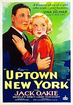 Uptown New York is a 1932 American pre-Code romantic drama film directed by Victor Schertzinger and starring Jack Oakie, Shirley Grey and Leon Ames.[1] It is based on the story by Vina Delmar.