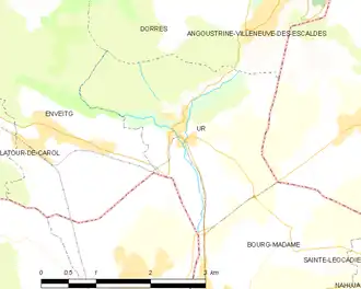 Ur is located in the canton of Les Pyrénées catalanes and in the arrondissement of Prades. Ur-Les Escaldes station has rail connections to Villefranche-de-Conflent and Latour-de-Carol.