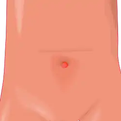 A urachal cyst is a sinus remaining from the allantois during embryogenesis. It is a cyst which occurs in the remnants between the umbilicus and bladder.[1] This is a type of cyst occurring in a persistent portion of the urachus, presenting as an extraperitoneal mass in the umbilical region. It is characterized by abdominal pain, and fever if infected. It may rupture, leading to peritonitis, or it may drain through the umbilicus.[1] Urachal cysts are usually silent clinically until infection, calculi or adenocarcinoma develop.[2]