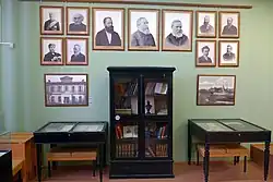Upon its founding the society was primarily concerned with the study of the natural history of the Ural region. However, as the society grew it began to branch out into new fields, such as meteorology and archeology. The UOLE continued to expand its membership in the 1870s and 80s, opened schools, and acquired artifacts. The collection of objects owned by the group continued to grow, especially after the society held a successful industrial exhibition in 1887 that netted the society many donations.[2][3] In 1889 the society opened its first permanent exhibition, housing it in part of a local government building.[2] The society also began to form chapters in other Russian cities; some of these chapters (like the society's Perm chapter, founded in 1890) would later go on to found their own museums.[4]