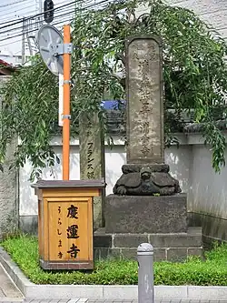 Neither recorded the name to the temple, but Japanese sources write that the so-called Urashima-dera (Urashima Temple) used to be Kanpuku-ji (観福寺), until it burned down in 1868,[ab] and the temple, including the Kannon goddess statue got translated to Keiun-ji (慶運寺) in 1872.[100][101]