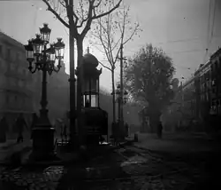 The city's first fire and police services also appeared at this time. In 1843 the Guardia Urbana de Barcelona was created, in charge of the defense of public safety; in 1938 they also assumed control of traffic and urban circulation.[90] On the other hand, in 1849 the Sociedad de Socorro Mutuo contra Incendios (Mutual Fire Aid Society) emerged, a private company that in 1865 was replaced by the Sociedad de Extinción de Incendios y Salvamento de Barcelona (Barcelona 's Fire Extinguishing and Rescue Company), he first public fire department managed by the City Council. Its first chief was the architect Antoni Rovira i Trias, and its first firehouse was the Casa de Comunes Depósitos (House of Common Warehousess) which was followed by multiple firehouses throughout the city. In 1908, animal-drawn vehicles were replaced by motor vehicles, and in 1913 the figure of the firefighter, until then casual, was professionalized.[91]