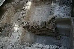 The Roman Malaca was significantly larger than its Phoenician predecessor, with evidence of a pottery industry around the El Ejido hill and Calle Ollerías in the 1st century.[5] The most prominent remains are those of the Roman Theatre of Málaga, located next to the Alcazaba, along with fragments of the road system and large public baths in the area of Calle Alcazabilla toward Calle Císter.[7] Beyond this area, the structure and layout of the Roman city are poorly understood. Several funerary sectors have been identified on the outskirts, some along communication routes, consistent with the urban planning standards of the Empire adopted generations after the arrival of the Romans.[8]